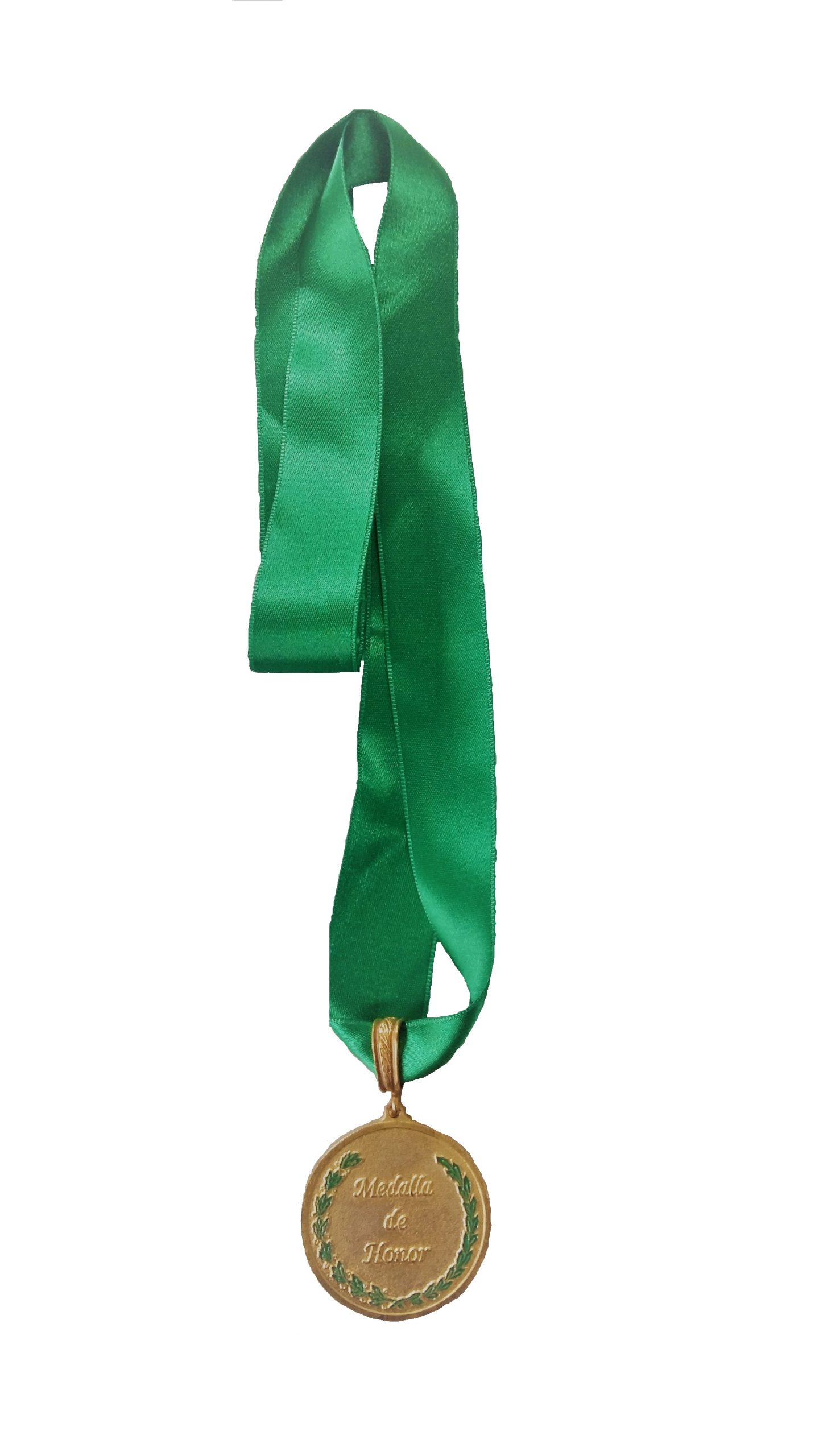 Aleación de bronce de alta fusión, chapada en oro de 18 quilates con 3 micras de grosor. Reconocimiento a las personas que colaboran con la Asociación